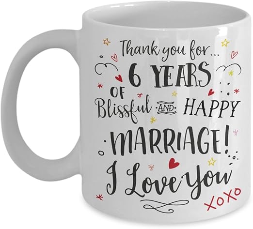 Amazon Com 6th Wedding Anniversary Gift Mug Blissful Happy